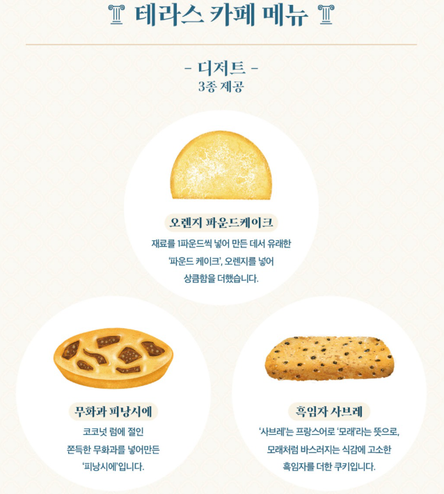 : 석조전 2층 테라스에 작은 카페가 열립니다. 아름다운 봄밤에 우리를 위한 카페가 열린다는 상상만으로도 너무너무 기대되는 코스입니다. 멋스럽고 신비한 석조전에서 클래식을 들으며 황실 가배와 디저트를 사랑하는 사람과 함께 즐길 수 있다는 이벤트 자체가 덕수중 밤의 석조전만에서 가능한 하이라이트이지 않을까 싶습니다.