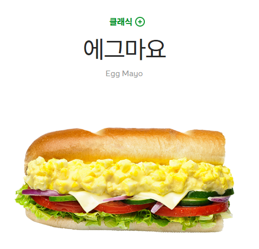 고소한 마요네즈와 부드러운 계란이 완벽하게 조화된 에그마요는 꾸준히 사랑받는 서브웨이 꿀조합입니다.