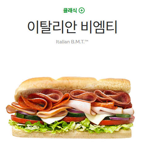이탈리안 비엠티는 고기의 풍미가 가득해 많은 사랑을 받는 서브웨이 꿀조합 중 하나예요.