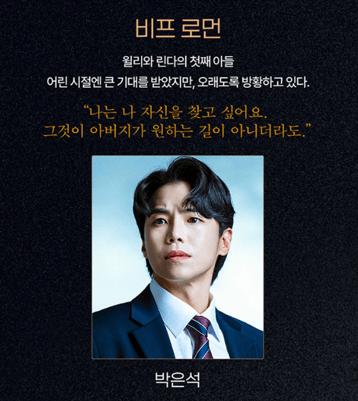 비프 로먼 역은 이상윤, 박은석이 맡아 젊은 에너지를 더합니다.