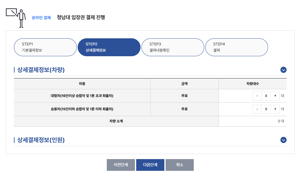 주차 할 차량 정보, 입장할 인원수(성인, 청소년, 어린이)를 선택하고, 해당 날짜의 입장 가능 시간을 확인합니다.