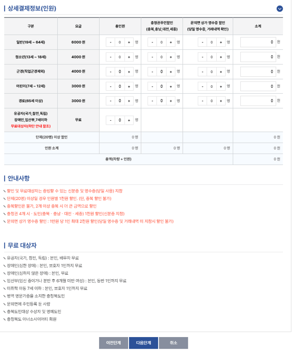 - 충청북도 고향사랑 기부증서 소지자 : 1천 원 할인