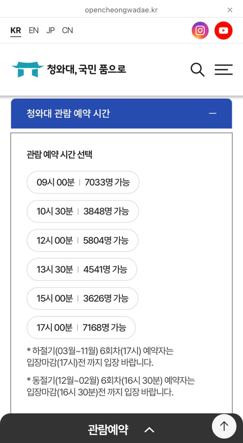 - 주말 및 공휴일은 예약이 조기 마감되는 경향이 있으며, 최근에는 평일 예약도 빠르게 마감되고 있음