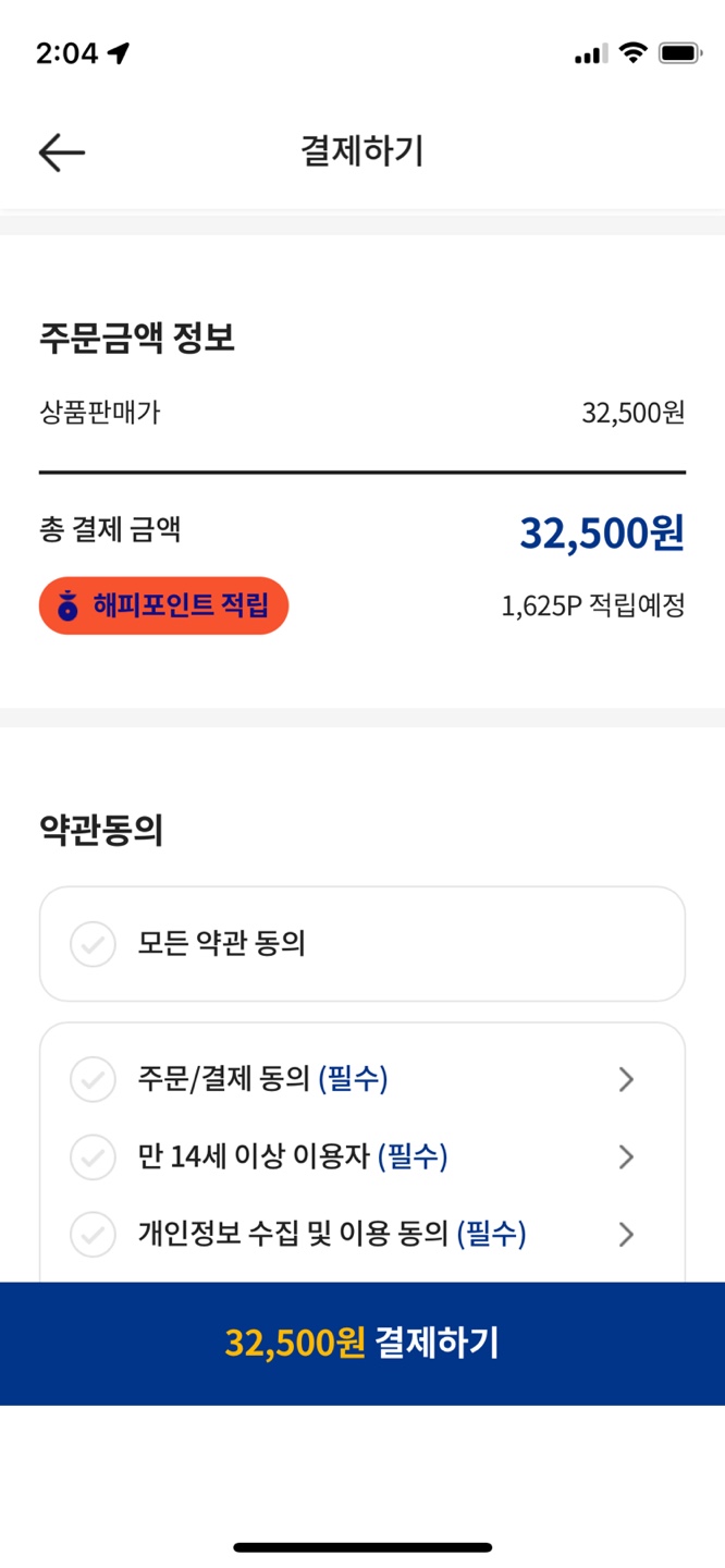 ⑦ 결제하기 (결제 시 해당 금액에 대한 해피포인트 적립됨)